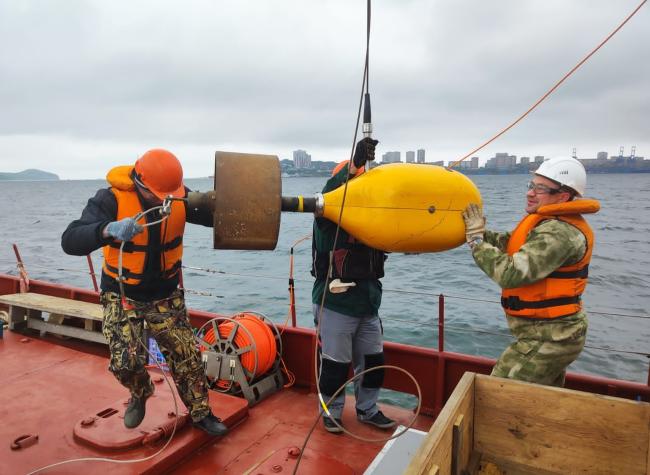 ТОИ ДВО РАН продолжил обследование бухты Золотой Рог по заданию Министерства природных ресурсов и экологии России. За последнюю неделю была выполнена комплексная геофизическая съемка дна бухты с высоким пространственным разрешением, которая включала работы с буксируемыми сейсмопрофилографом и магнитометром, а также детальный эхолотный промер. Это позволит обнаружить затопленные металлические объекты, а также иные предметы, представляющие очаги экологического ущерба, даже скрытые под слоем ила.