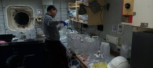 Руководитель экспедиции – заведующий лабораторией гидрохимии к.г.н. Семкин Павел Юрьевич. Общий состав экспедиции включал 23 человека, в числе которых сотрудники ТОИ ДВО РАН, ННЦМБ ДВО РАН, ТИБОХ ДВО РАН, студенты Дальрыбвтуза и двое представителей Государственной лаборатории эстуарных и прибрежных исследований Восточного Китайского Педагогического Университета (г. Шанхай, КНР). К анализу проб привлечены также лаборатории ААНИИ (г. Санкт-Петербург), КамчатНИРО (г. Петропавловск-Камчатский) и SKLEC (г. Шанхай, КНР).